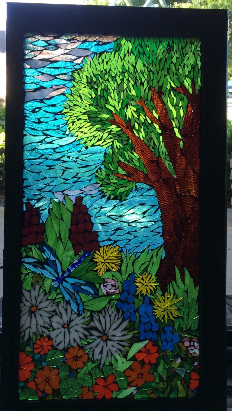 I recently sold one of my favorite windows I have completed. It was based on the old hymn, “In the Garden”. My favorite parts of that hymn are the lines, “I go to the garden alone, while the dew is still on the roses…and He walks with me and He talks with me, and He tells me I am His own. And the joy we share as we tarry there, none other has ever known”. This is my version of that garden.