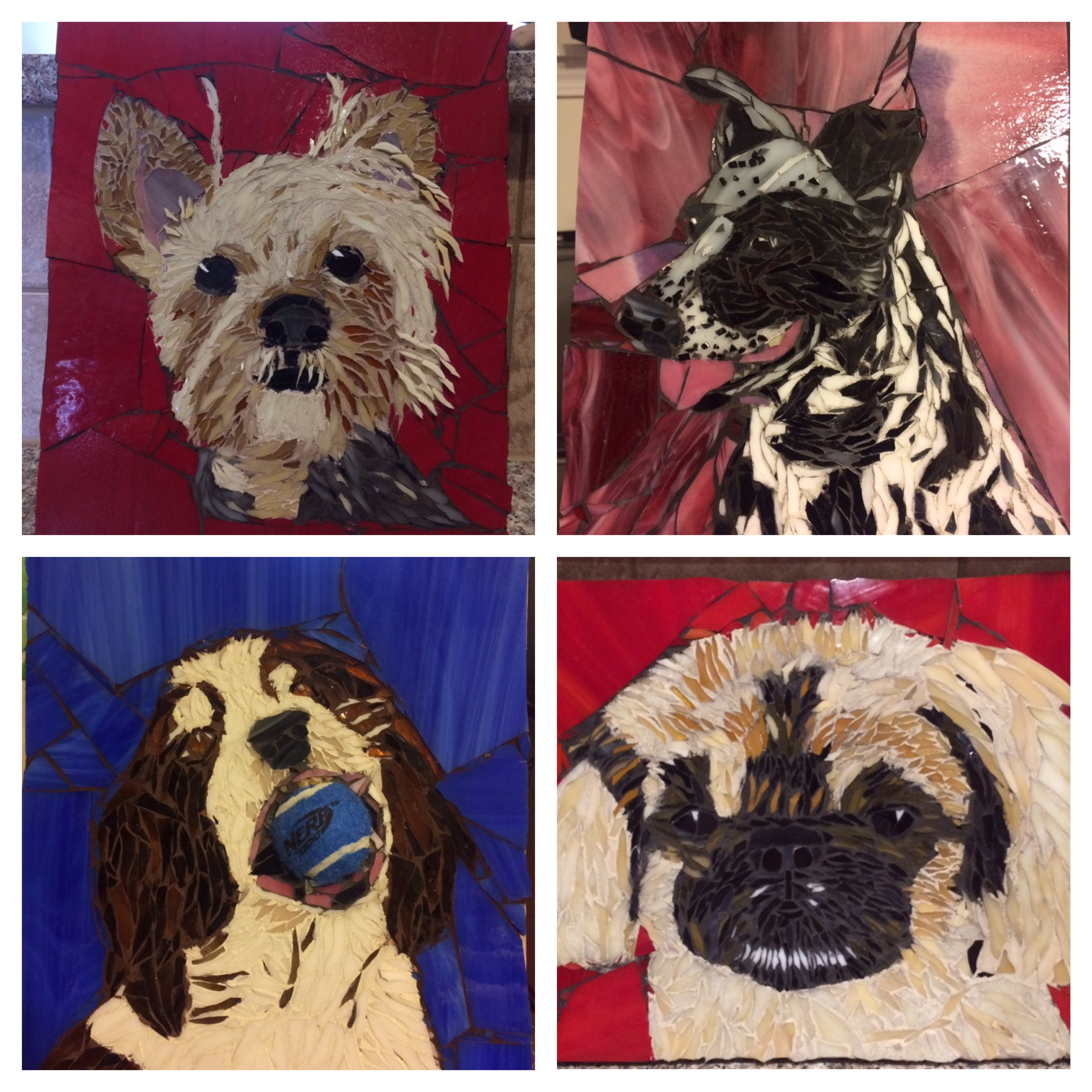 I have taken several classes that have helped me to develop new and different skills in mosaics. I took a class with Yulia Hanansen in Mosaic Pet Portraits and the Art of Painting with Glass. This class totally changed my approach to mosaics. Pet portraits continue to be my favorite projects to do. Capturing not just a semblance of the animal but their true essence gives me such joy. I love working with the owner to be sure that we have really created a portrait that gives them joy when they look at it.