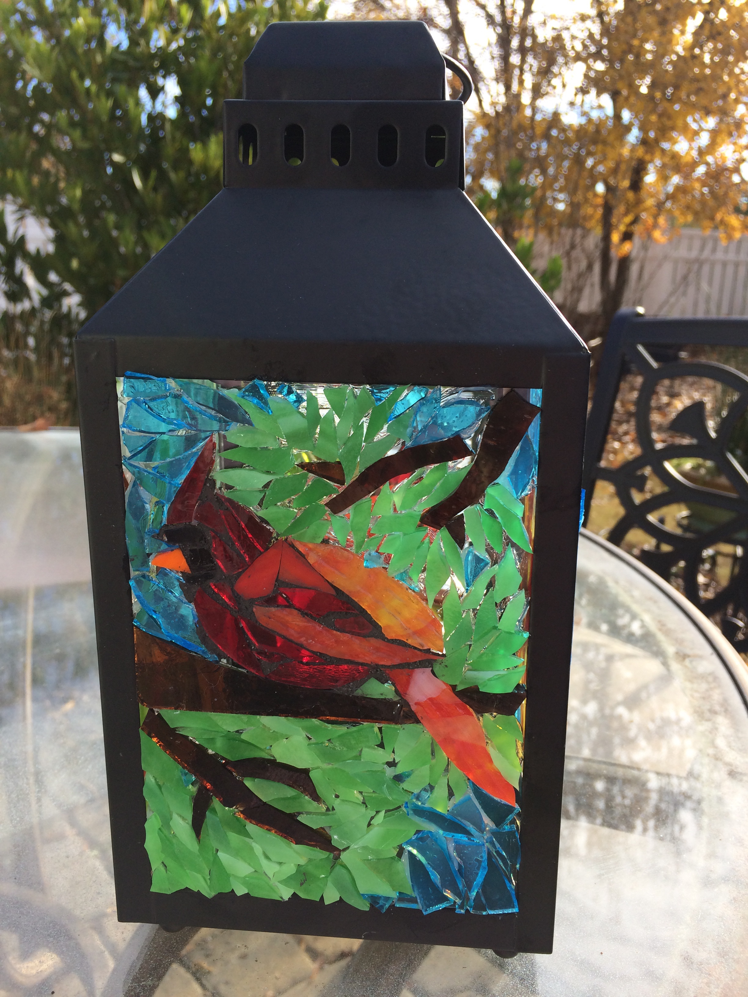 When I look at birds, my mind always returns to the Bible verse about God’s care for the sparrow. During the Depression, my grandfather Pope had a small store that he ran in the community. He was a very caring and generous man and he could not bear to see families going hungry so he continued to issue his neighbors food on credit even though he knew they could not pay him. Eventually he reached the end of his ability to provide for them. He was very distraught over how he would provide for his family of 8 people for whom he was the only provider. While out in the field trying to start a new field, he set a fire to burn off the brush so he could plow. One area of the field refused to burn even though it was thick with brush. When he went to investigate the problem, he found a small nest of sparrows. He fell to his knees weeping and praising the Lord because he knew that God had sent this to him as a sign that his family would be okay. Because if God could protect these few sparrows, he knew God would protect his family. I am very grateful for God’s protection and for the example of a godly grandfather who loved his family and loved his Lord. Here is Libby’s tree window.